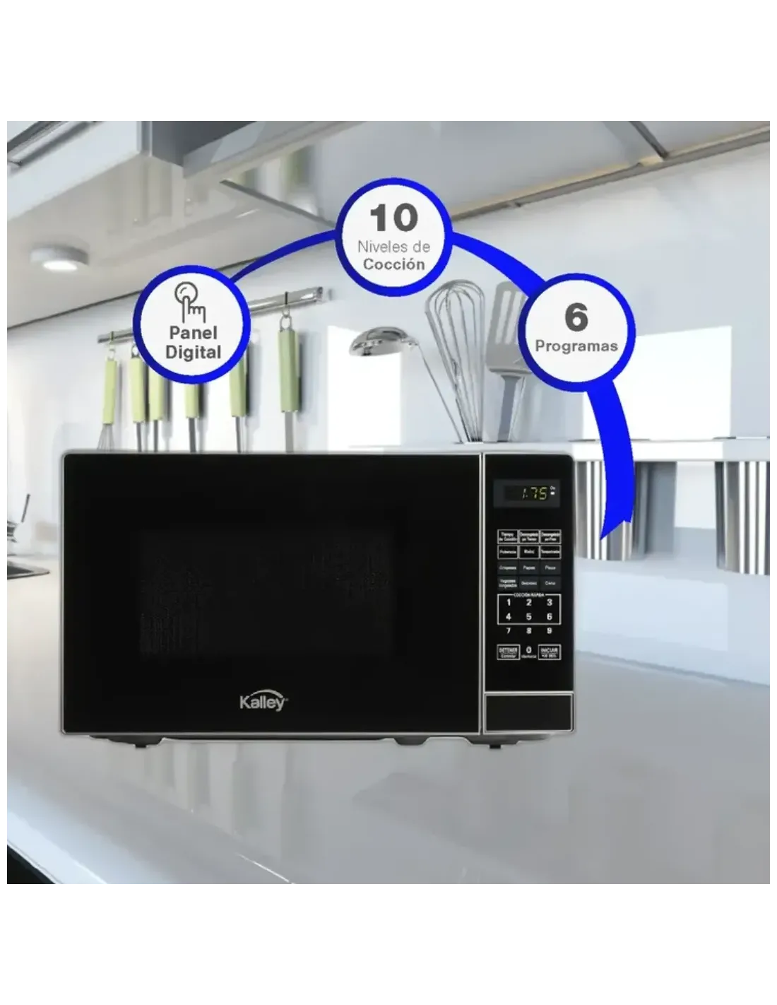 El Horno Microondas Kalley K-MW07N cuenta con una potencia de 700W que permite cocinar tus alimentos en menor tiempo. Sus niveles de potencia son de 0 a 10, ajustable y 6 opciones preprogramadas para que elijas de acuerdo con lo que quieras cocinar
