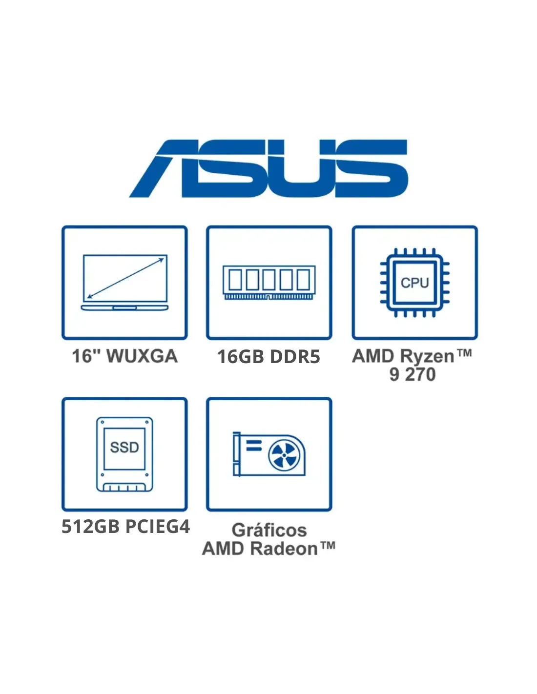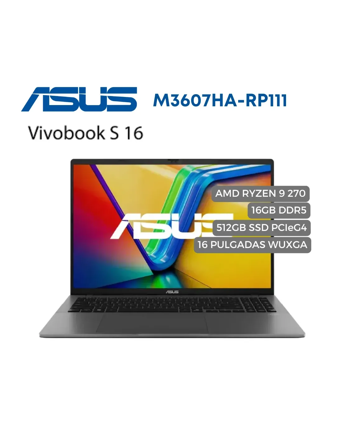 Portatil Asus Vivobook M3607H AMD Ryzen 9 270, 512GB SSD PCIEG4, DDR5 16GB, 16" WUXGA