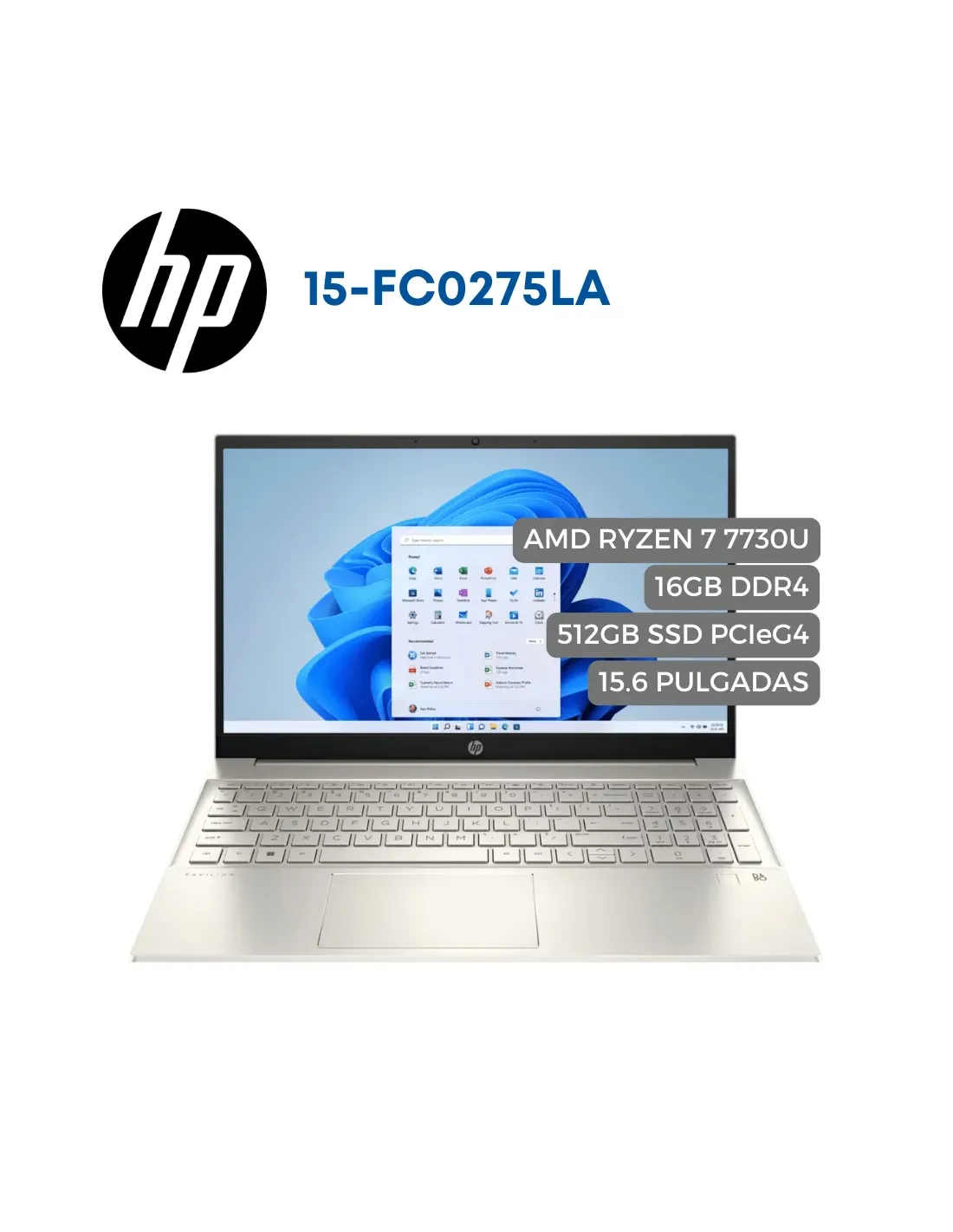 Portatil HP 15-fc0275la AMD Ryzen 7 7730U, 512GB SSD, 16GB DDR4, 15.6" LED